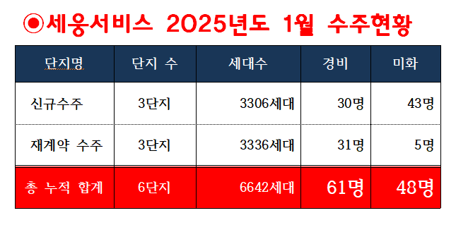 ◉세웅서비스 2025년도 1월 수주현황 [수량자료]